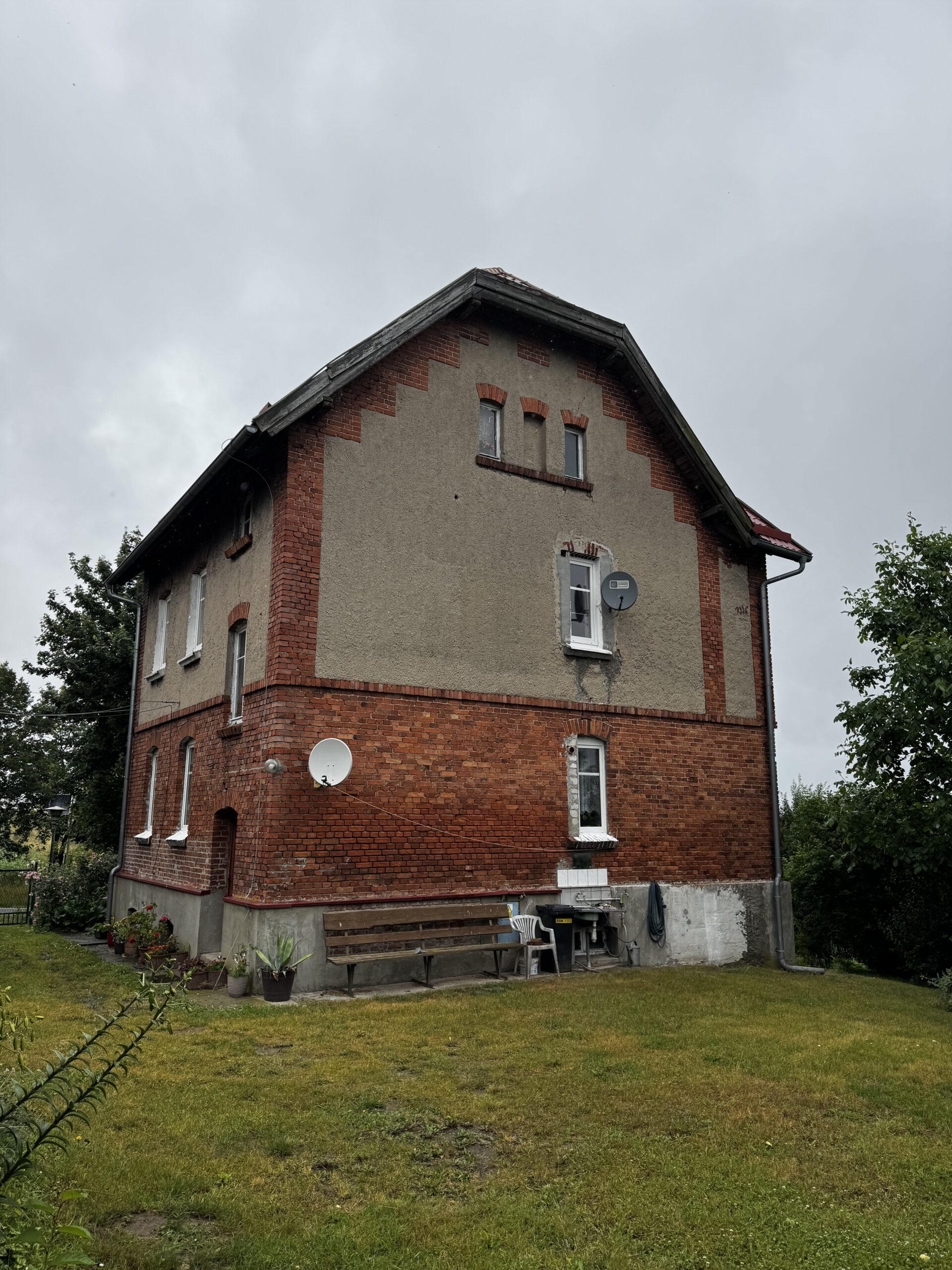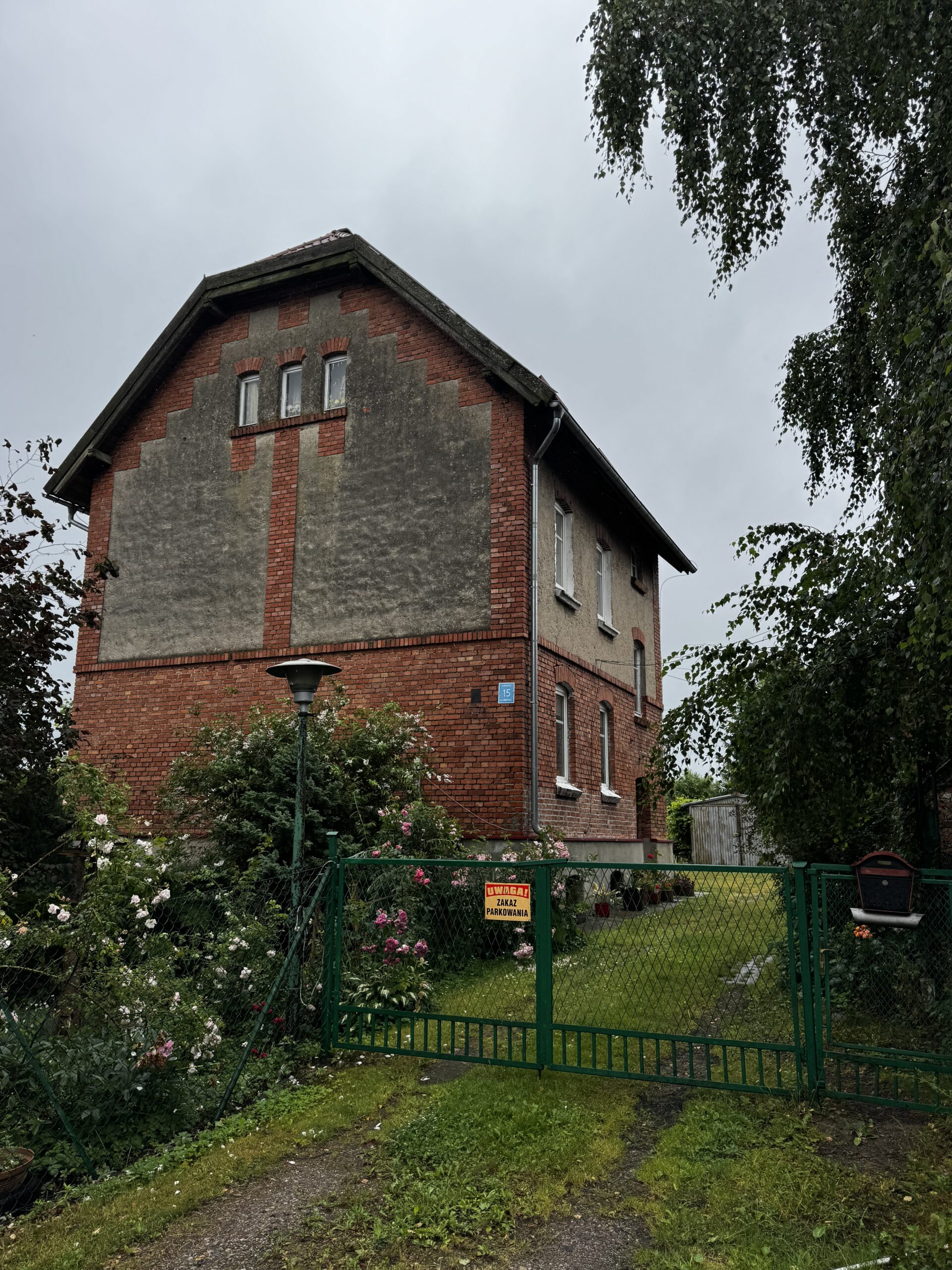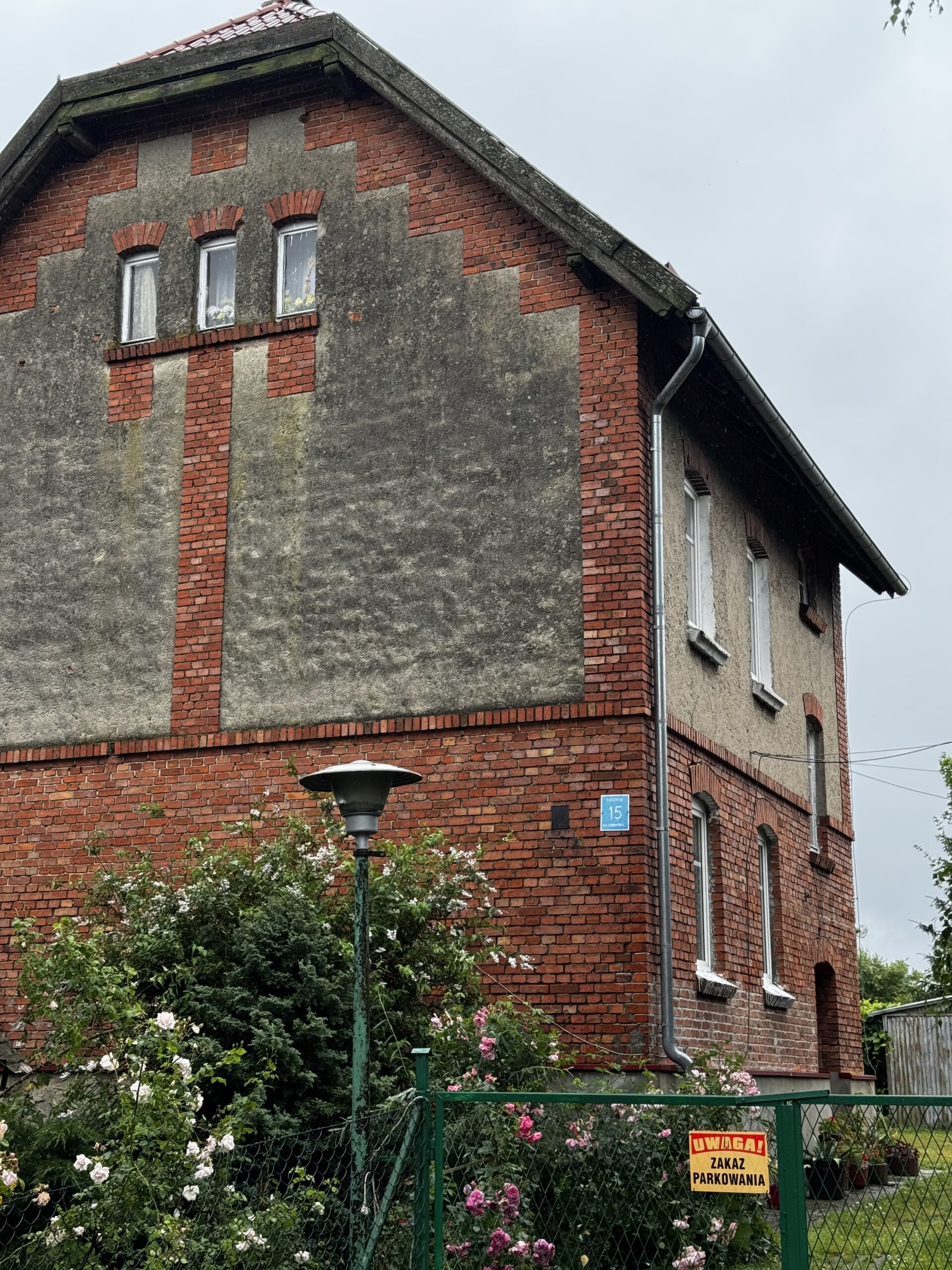 Murowany z czerwonej cegły, podpiwniczony, (kotłownia, skład opału oraz pomieszczenia piwniczne). Klatka schodowa z której wchodzimy do mieszkań na poszczególnej kondygnacji. Na parterze lokal mieszkalny o powierzchni 48 m², składa się z kuchni, łazienki, wc i trzech pokoi, (pokoje przejściowe). Na I piętrze znajduje się identyczne mieszkanie. Poddasze – strych, które można zaadoptować na trzecie mieszkanie.